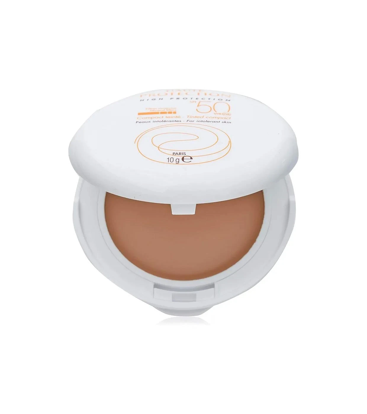 La crème solaire teintée haute protection SPF 50 compacte intègre un complexe de filtres 100% minéraux stables, offre une très bonne tolérance et une haute protection contre les rayons UVB et UVA (courts et longs).