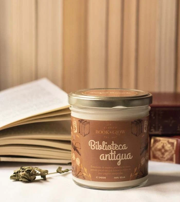 Bougie de soja de la collection Perfect Moments de Book and Glow. Ancienne bibliothèque.