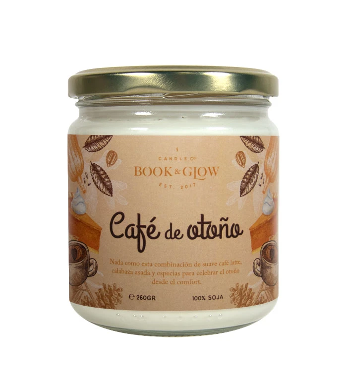 Bougie de soja végétalienne Café d’automne par Book and Glow – Café doux, citrouille et épices