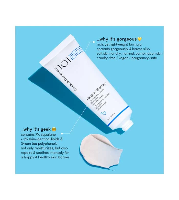 Crème nourrissante et hydratante 10% squalène + lipides Happier Barrier par Geek & Gorgeous.