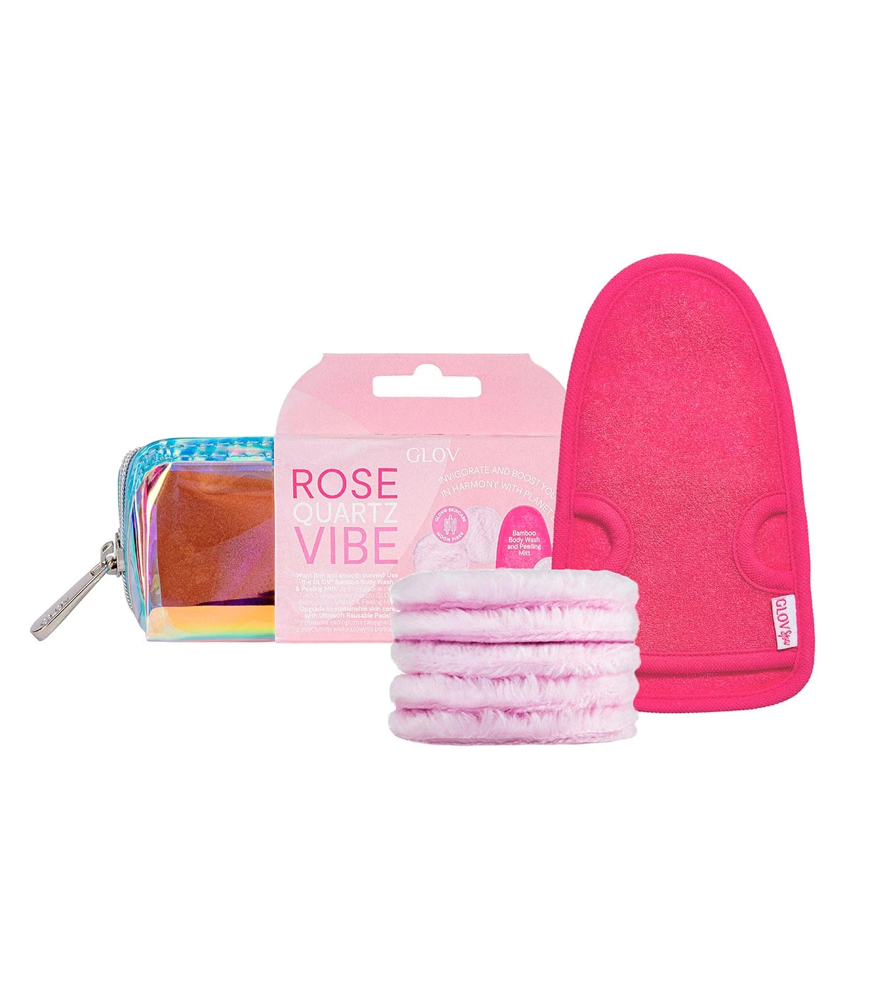 Ce coffret offre une routine de nettoyage complète et durable pour le visage et le corps. Les disques extra-doux en fibre de lune sont parfaits pour le visage, tandis que le gant nettoyant et exfoliant en viscose de bambou convient au corps. Pour une peau douce et souple.