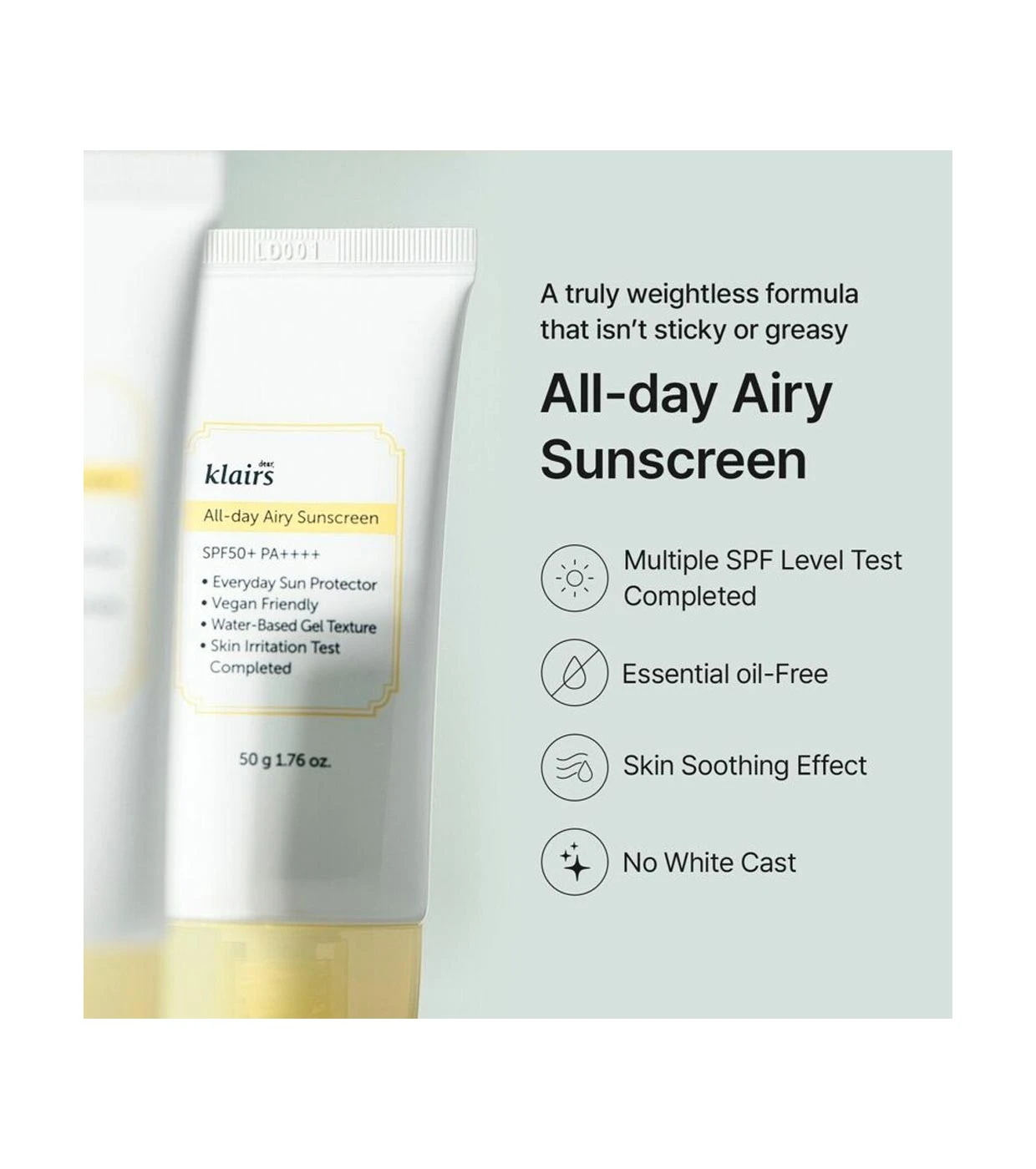 La crème solaire Klairs est parfaite pour un usage quotidien, car c’est une crème légère, fraîche et non collante.