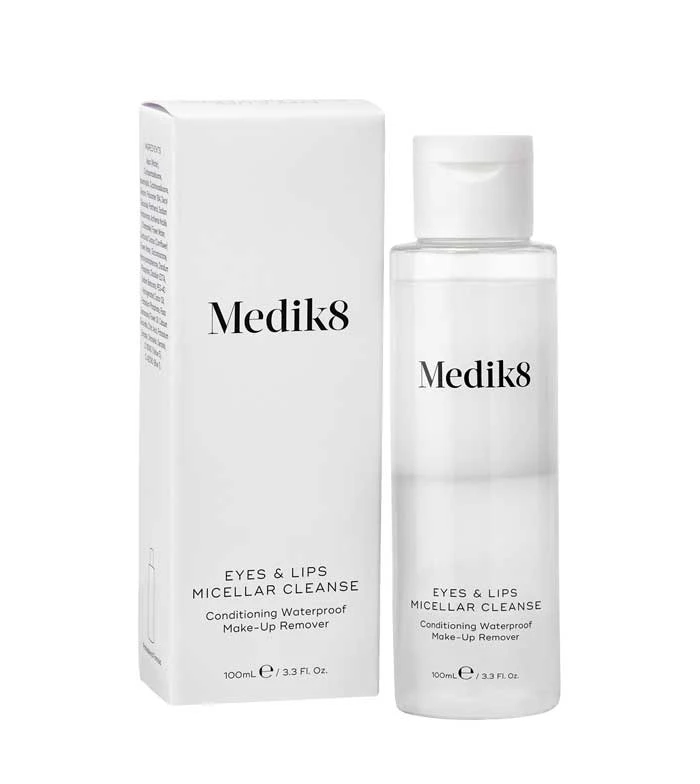 Enlevez le maquillage des yeux et des lèvres le plus résistant et même waterproof avec le démaquillant pour les yeux et les lèvres Medik8 Micellar Cleanse .