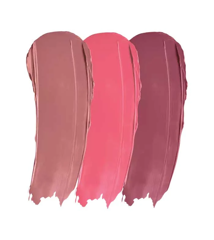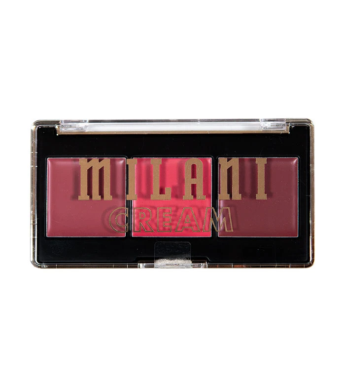 Cette palette de blush crème Milani Cheek Kiss contient trois teintes pour donner à vos joues la finition que vous souhaitez.