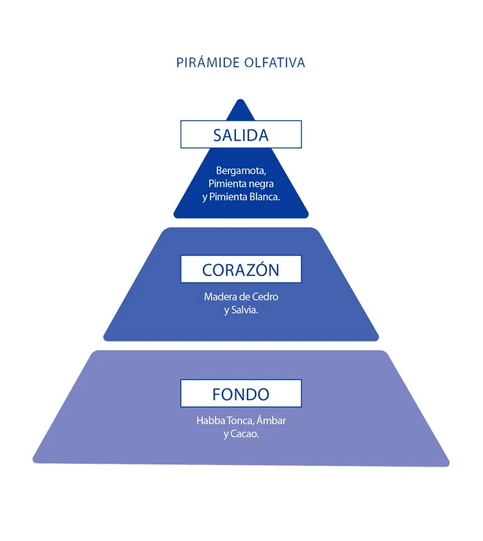 Sans aucun doute un parfum particulier accompagné de senteurs telles que le poivre noir, la bergamote, le poivre blanc, le bois de cèdre, la sauge, l’ambre, le cacao et la fève tonca.
