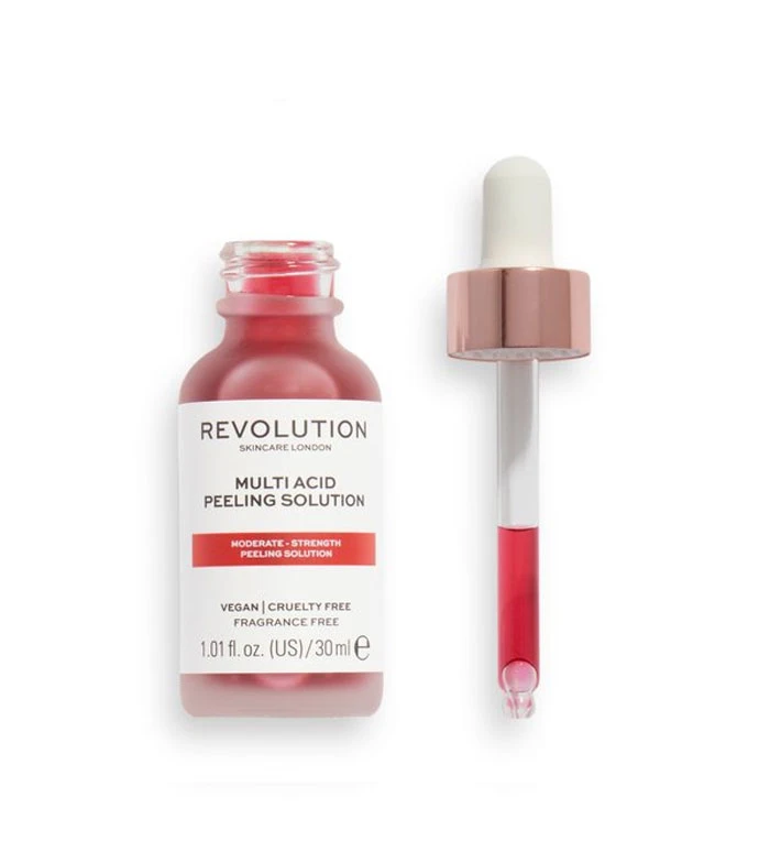 Revolution Skincare AHA & BHA Multi-Acid Peeling est une solution conçue pour les peaux les plus sensibles ou pour les personnes n’ayant jamais utilisé de peeling chimique.