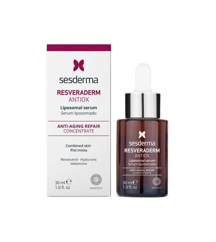 Le sérum antioxydant liposomal Resveraderm de Sesderma agit comme un puissant antioxydant qui protège la peau des agressions environnementales telles que le stress, la fatigue, les rayons du soleil… et la répare la nuit en corrigeant les rides.