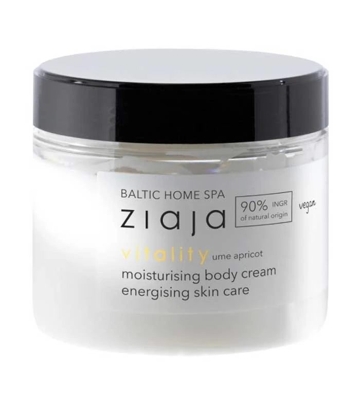 Crème hydratante pour le corps Vitality de la ligne Ziaja Baltic Home Spa avec 90% d’ingrédients d’origine naturelle.
